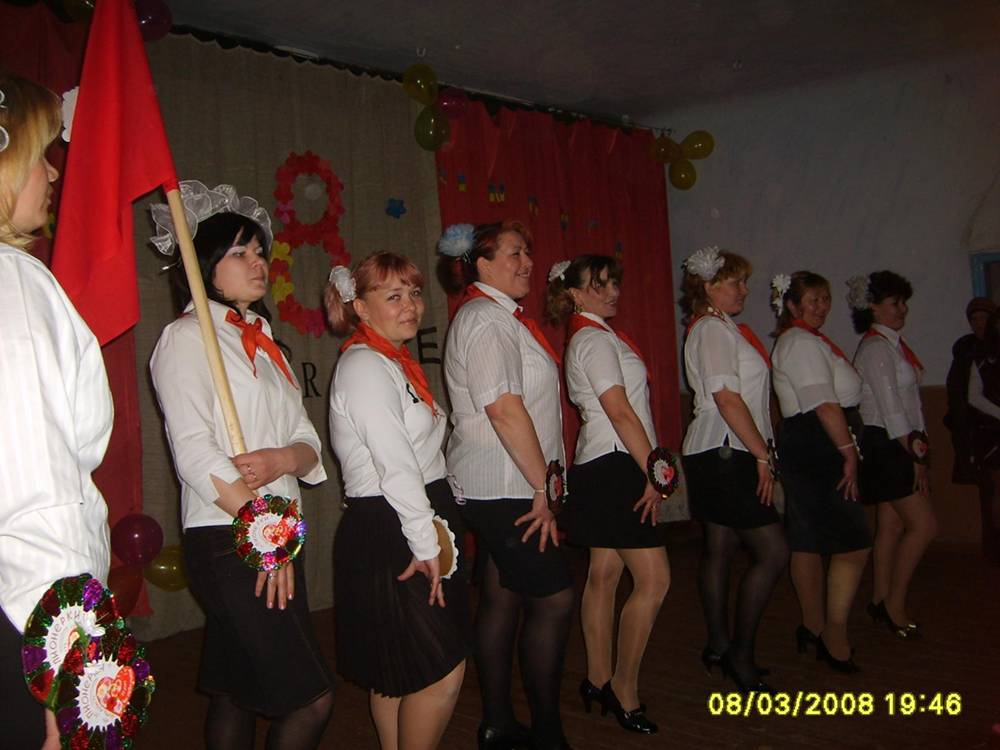 - Directorul casei de cultură, Liuba Ciobanu, a fost distincă cu o Diplomă de laudă a sovietului sătesc. Ea a organizat serata Părinți, religie, copii. Au vorbit medicul Leonid Jukovski, educatoarea Valentina Vechiu, bibliotecara Valentina Popescu. Învingători ai expoziției broderii și culinărie: Fedora Karpliuk, Ludmila Pisova, Pelagheia Racicovski.