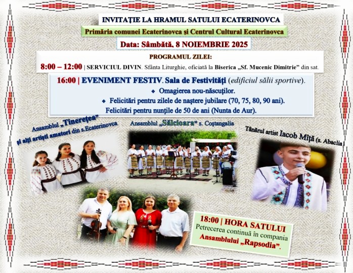 Invitație la Hramul satului Ecaterinovca!